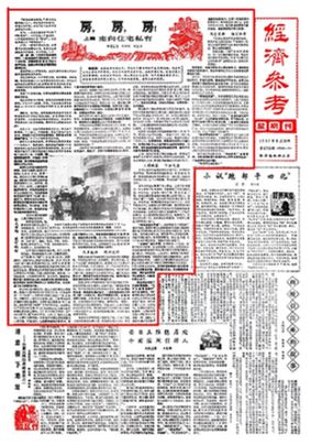 80年代初,改革的東風讓經(jīng)濟建設的熱潮,一浪高過一浪,新華社想辦一份綜合性經(jīng)濟報紙,時任新華社國內(nèi)部副主任的李峰建議,報紙采用“經(jīng)濟參考”作為報名,第一可以有些“神秘”色彩,第二說話可以放開一些。新華社黨組采納了他的意見。