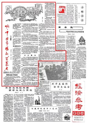 這是《經(jīng)濟參考報》的創(chuàng)刊號。在頭版《要用管理集體企業(yè)的辦法管理全民企業(yè)》一文中,時任天津市市長胡啟立表示,“吃大鍋飯”的經(jīng)濟管理體制已走進死胡同。如果用管理集體企業(yè)的辦法來管理全民企業(yè),浪費會大大減少,國家收入會大大增加,職工生活會大大改善,這是明擺著的事情。在這個問題上,誰覺悟得早誰主動;誰還在老框框里吃“大鍋飯”,誰就被動。