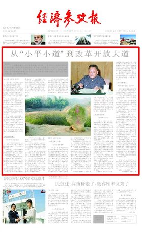 2008年,也是中國改革開放30周年,《經(jīng)濟參考報》刊發(fā)《從“小平小道”到改革開放大道》。當年,受到錯誤批判的鄧小平同志被疏散到江西新建縣拖拉機廠勞動。在這條原本不是路、工友們?yōu)榱俗屗焕@遠路而悄悄修整出來的田邊小路上,鄧小平徘徊了三年、思考了三年。當鄧小平重新登上中國政治舞臺中心的時候,他帶領全國人民走上了一條沒有前人經(jīng)驗借鑒的改革開放大道。
