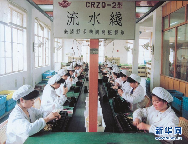 “樂清縣求精開關(guān)廠”(正泰集團前身)車間(1984年7月攝)。?新華社發(fā)