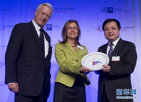 南存輝在第七屆中歐論壇德國漢堡峰會上獲“中歐可持續(xù)發(fā)展獎”(2016年11月攝)。?新華社發(fā)