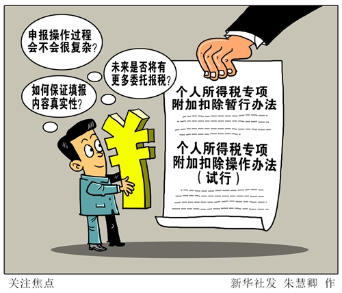 日前,《個人所得稅專項附加扣除暫行辦法》和《個人所得稅專項附加扣除操作辦法(試行)》正式公布。面對這項即將實施的惠民政策,很多人關(guān)心:申報操作過程是否會很復(fù)雜?如何保證信息真實性?委托報稅可否實現(xiàn)?“新華視點”記者采訪了權(quán)威人士、專家以及多地基層稅務(wù)人員,回應(yīng)民生關(guān)切。