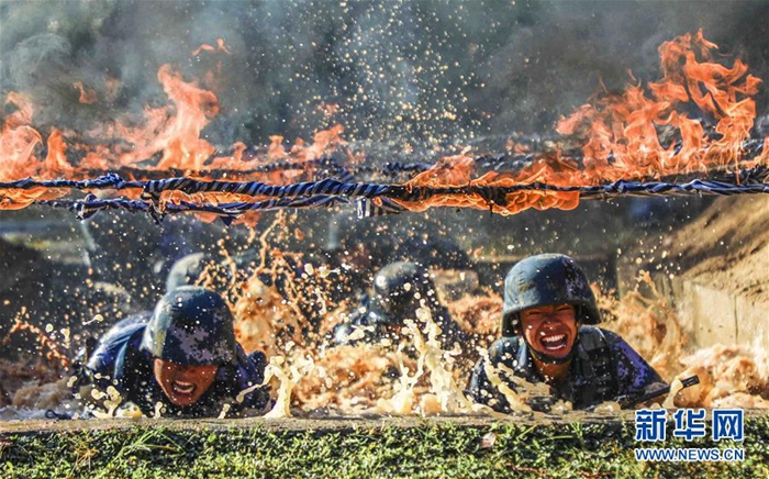 海軍陸戰(zhàn)隊(duì)某旅偵察營在三亞某訓(xùn)練場開展極限體能訓(xùn)練(11月21日攝)。新華社發(fā)(范旭東 攝)