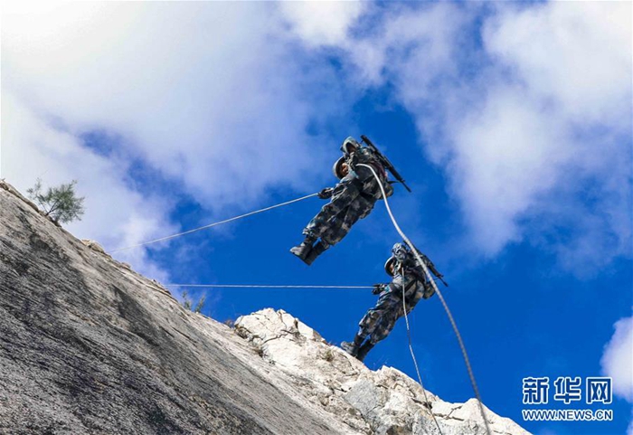 海軍陸戰(zhàn)隊(duì)某旅偵察營在三亞某地進(jìn)行崖壁滑降訓(xùn)練(11月20日攝)。新華社發(fā)(范旭東 攝)