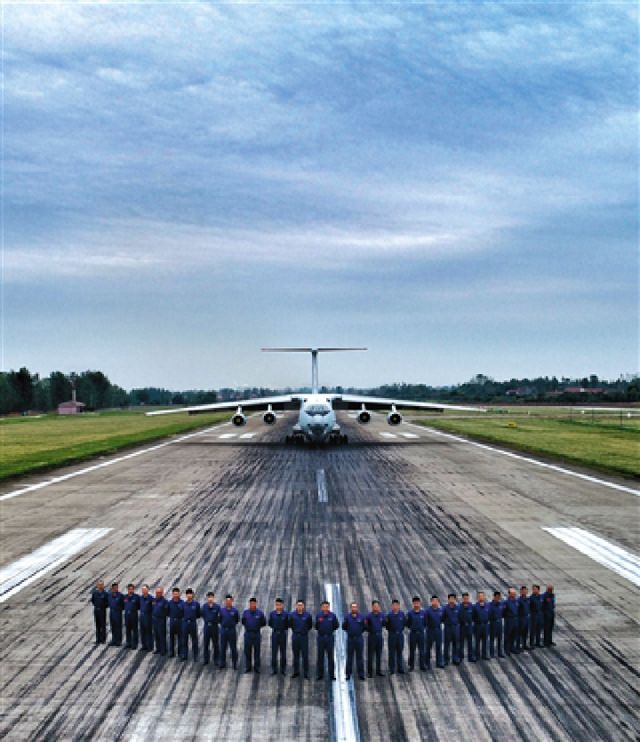 ↑“昆侖雄鷹大隊”飛行三大隊飛行員與飛機(jī)合影