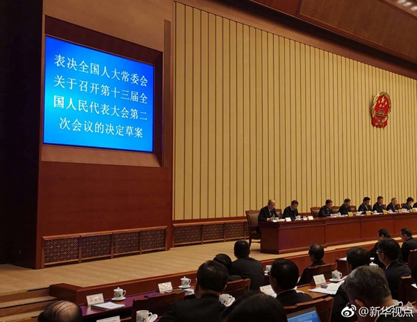 十三屆全國人大常委會第七次會議29日表決通過了關于召開十三屆全國人大二次會議的決定。根據(jù)決定,十三屆全國人大二次會議將于2019年3月5日在京召開。