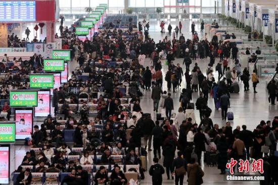 資料圖:高鐵已開售春運車票,車站內(nèi)人頭攢動。中新社記者 張遠 攝