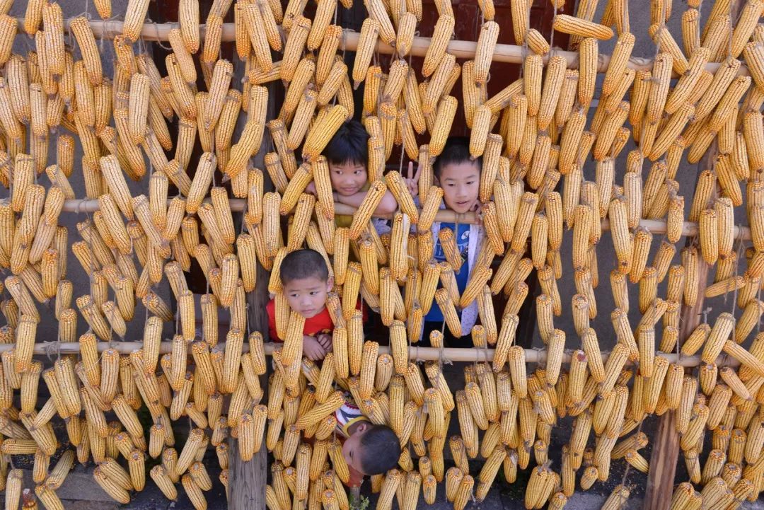 2018-10-06,三明市尤溪縣。三明市尤溪縣洋中鎮(zhèn)的桂峰村舉辦曬秋節(jié),小朋友們在黃黃的玉米堆中玩耍。作者:旺