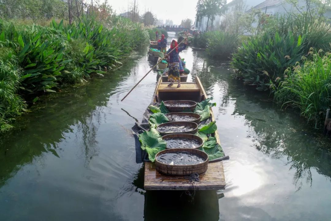 2018-09-23,江蘇泰州興化。在江蘇省興化市東羅村,農(nóng)民在“水上市集”展示特色農(nóng)產(chǎn)品。當(dāng)日是首屆中國農(nóng)民豐收節(jié),全國各地舉行豐富多彩的活動(dòng)慶祝豐收。作者:湯德宏