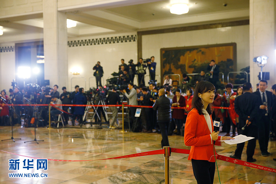 ??? 3月5日,第十三屆全國(guó)人民代表大會(huì)第一次會(huì)議在北京人民大會(huì)堂開(kāi)幕。這是記者在“代表通道”采訪。 新華網(wǎng)/中國(guó)政府網(wǎng) 陳杰 攝
