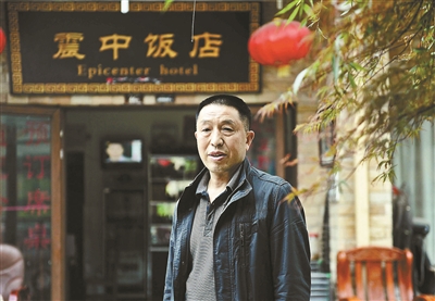 對(duì)于震中飯店來說,這樣幾百人聚在一起的畫面已經(jīng)許久沒有出現(xiàn)。2008年5月12日,曠古未見的地震幾乎吞噬了整個(gè)映秀。剛剛在保險(xiǎn)公司辦完事的楊云青,在逃出保險(xiǎn)公司大門后,趕緊趕往孫子所在的學(xué)校。在滿操場(chǎng)彌漫的白灰中,他和幾個(gè)家長一起徒手挖出了幾個(gè)孩子,第二天清晨,他又從電廠借來吊車,把車開進(jìn)了小學(xué)。一連9天,他始終和消防隊(duì)員一起奮戰(zhàn)在救援第一線,最終成功救出12個(gè)人。此后,楊云青“映秀好人”的名聲傳播開來。他所經(jīng)營的震中飯店,也一度成為大家爭相參觀的景點(diǎn)。