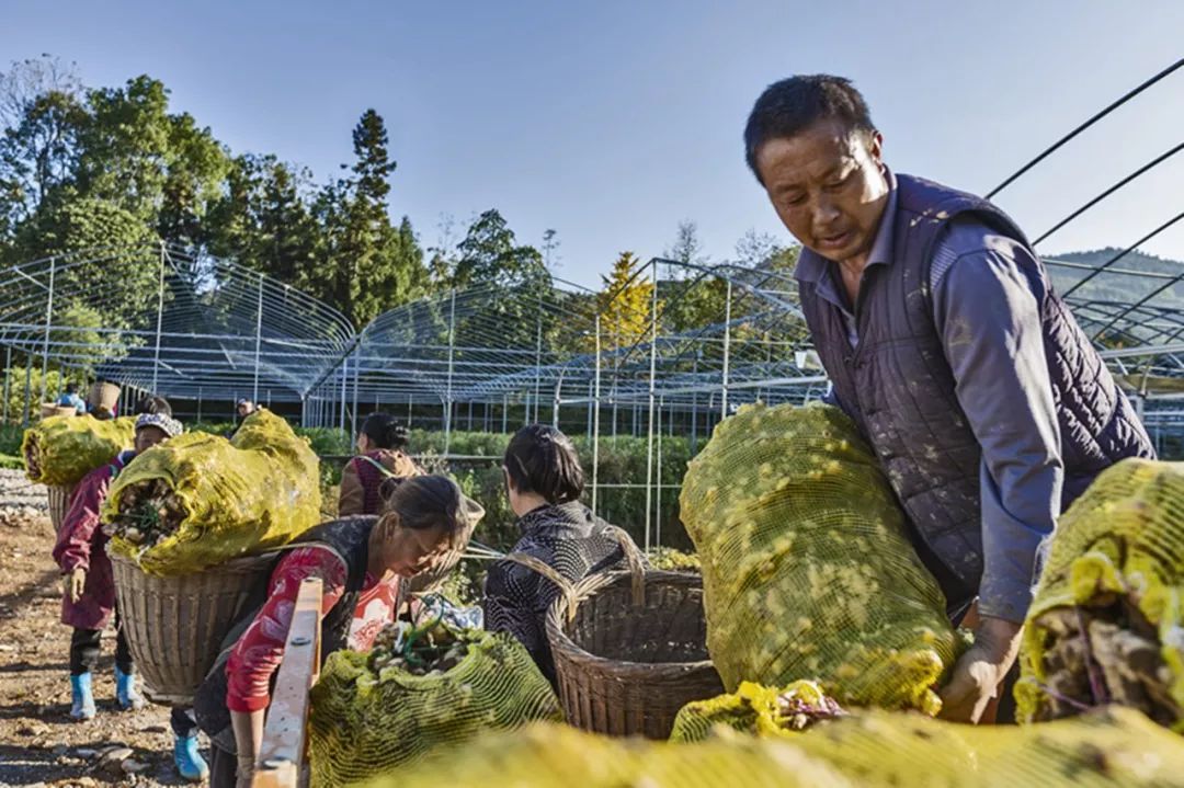 2018-11-17,湖北來鳳。 生姜是來鳳縣土特產(chǎn),農(nóng)民正在把生姜裝車。作者:楊秀國
