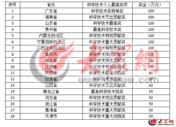 盤點各省科技最高獎金額 讓獲獎人全部支配獎金的不多見