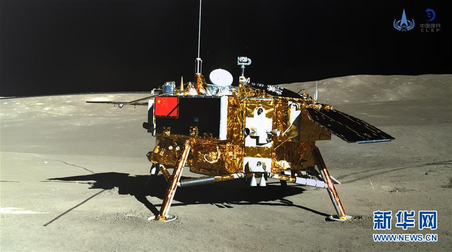 這是玉兔二號巡視器全景相機對嫦娥四號著陸器成像?!⌒氯A社發(fā)(國家航天局供圖)