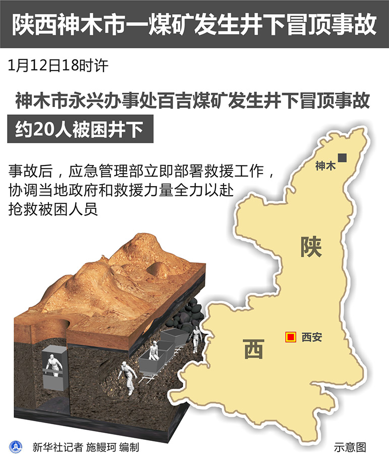 新華社西安1月12日電(記者李亞楠)記者從陜西省相關(guān)部門獲悉,12日18時(shí)許,陜西省神木市永興辦事處百吉煤礦發(fā)生井下冒頂事故,約20人被困井下。目前,陜西省政府常務(wù)副省長梁桂已帶領(lǐng)相關(guān)部門趕赴現(xiàn)場。