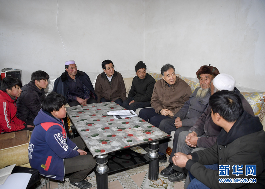 近日,中共中央政治局常委、全國政協(xié)主席汪洋在甘肅臨夏回族自治州調(diào)研脫貧攻堅(jiān)工作,看望慰問貧困群眾和基層扶貧干部。這是1月13日,汪洋在積石山保安族東鄉(xiāng)族撒拉族自治縣劉集鄉(xiāng)肖家村看望慰問貧困戶。 新華社記者 李學(xué)仁 攝
