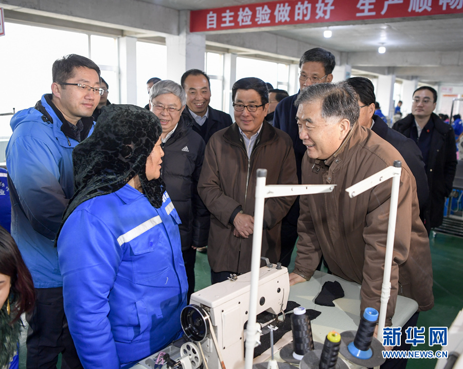 近日,中共中央政治局常委、全國政協(xié)主席汪洋在甘肅臨夏回族自治州調(diào)研脫貧攻堅(jiān)工作,看望慰問貧困群眾和基層扶貧干部。這是1月14日,汪洋在和政縣考察扶貧車間,調(diào)研東西部扶貧協(xié)作情況。 新華社記者 李學(xué)仁 攝