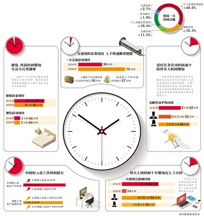 2018年,國家統(tǒng)計(jì)局組織開展了第二次全國時(shí)間利用調(diào)查,該調(diào)查覆蓋11個(gè)?。ㄊ校?,采用國家統(tǒng)一的住戶收支與生活狀況調(diào)查樣本框,共抽樣調(diào)查20226戶48580人。昨日,《2018年全國時(shí)間利用調(diào)查公報(bào)》出爐,結(jié)果顯示,與2008年相比,中國居民的時(shí)間分配結(jié)構(gòu)發(fā)生了較大變化,睡覺休息和用餐時(shí)間增加,收入越低的居民看電視時(shí)間越多,每天上網(wǎng)時(shí)間增加2小時(shí)28分鐘。
