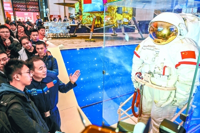 這件被譽為可以穿上身的“飛船”,暗藏玄機?!皠e小看衣服背后的一個小包,可以保證航天員的安全。”景海鵬身邊瞬間圍滿觀眾。一位觀眾說:“能在展覽現(xiàn)場聽宇航員講解,真提氣!身邊的展品,都是我國科技發(fā)展的見證,作為中國人,感到發(fā)自內(nèi)心的驕傲。”