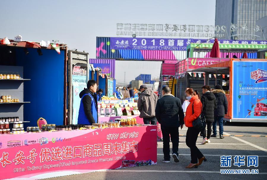 在陜西西安國際港務(wù)區(qū),消費者在“長安號”優(yōu)選進(jìn)口商品周末集市上參觀(1月19日攝)。新華社記者 邵瑞 攝