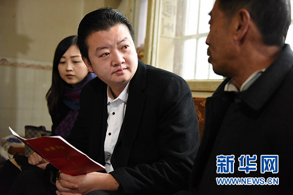 四川省敘永縣后山鎮(zhèn)三斗米村駐村第一書(shū)記胡凌鳴(右一)在貧困戶(hù)趙世蓮(右二)家了解脫貧進(jìn)展情況(1月15日攝)。新華社記者 陳天湖 攝