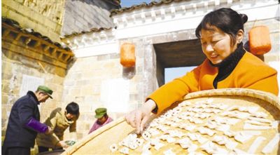 圖為江西省撫州市金溪縣竹橋古村,當地村民制作傳統(tǒng)食品,迎接新春。新華社記者 彭昭之攝