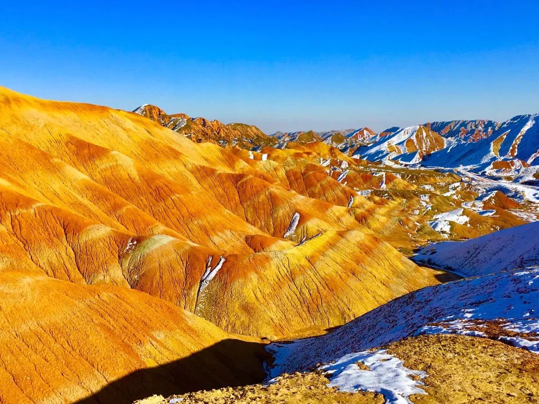 2019-01-31,甘肅張掖。甘肅張掖丹霞景區(qū)又降瑞雪,夏日色彩斑斕的丹霞,雪后變得更加如詩如畫,如夢如幻。作者 :朝陽
