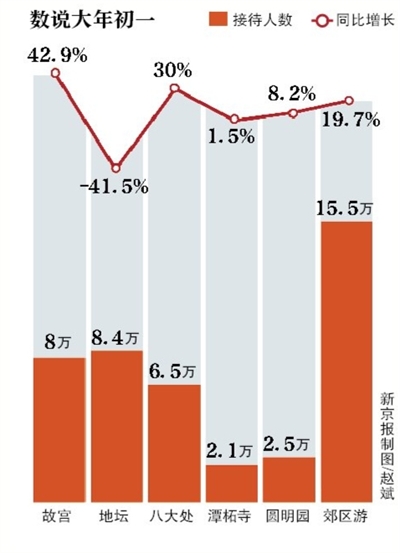 昨天是農(nóng)歷大年初一,“春節(jié)”假日第二天,記者從北京市假日辦獲悉,當(dāng)日,全市重點(diǎn)監(jiān)測(cè)的146家旅游景區(qū)共接待游客112.63萬(wàn)人次,其中故宮博物院共接待8萬(wàn)人次,同比增長(zhǎng)42.9%;廟會(huì)等各類民俗活動(dòng)共接待40.1萬(wàn)人次。市屬11家公園及園博館共迎來(lái)游客25萬(wàn)人次,同比去年增長(zhǎng)11%。各公園開展了傳統(tǒng)園林賀歲、鮮花廟會(huì)及非遺技藝、經(jīng)典展陳等不同形式的游園活動(dòng),給來(lái)園市民游客拜大年、送福氣。