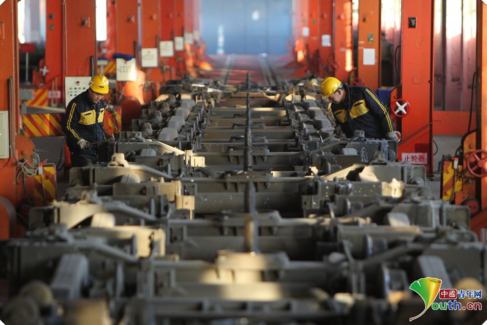 康亞斌和同事們所在的聯(lián)運(yùn)檢修車間擔(dān)負(fù)著北京至烏蘭巴托、北京至莫斯科以及呼和浩特至烏蘭巴托等6趟國際旅客列車換輪任務(wù),還要對這些車輛重要部件進(jìn)行定期檢修。
