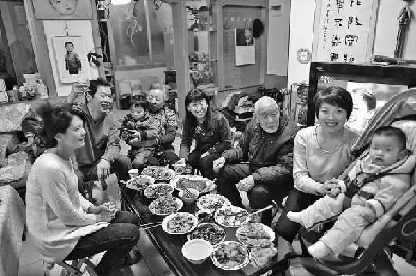 1953年,天津市漢沽區(qū)蘆臺王德鑄(左一)一家吃團圓飯。