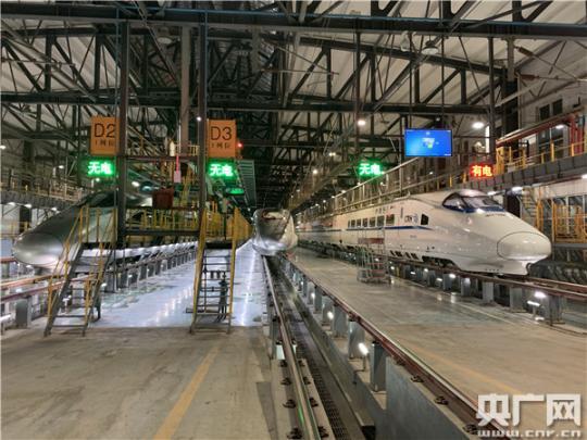 高鐵白天在線路上飛馳,夜晚才會進(jìn)入動車所。因此,每天下午5點半到次日凌晨的這段時間成了郭志華和同事們最忙碌的時刻。