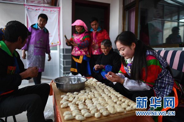 2月4日,松德村五社村民李玉花(右一)和家人一同包餃子。當(dāng)日是除夕,青海省海東市互助土族自治縣丹麻鎮(zhèn)松德村五社的40戶村民在新居中喜迎新春。2018年,這40戶村民通過易地扶貧搬遷政策住進新房并順利實現(xiàn)脫貧。 新華社記者 張宏祥 攝