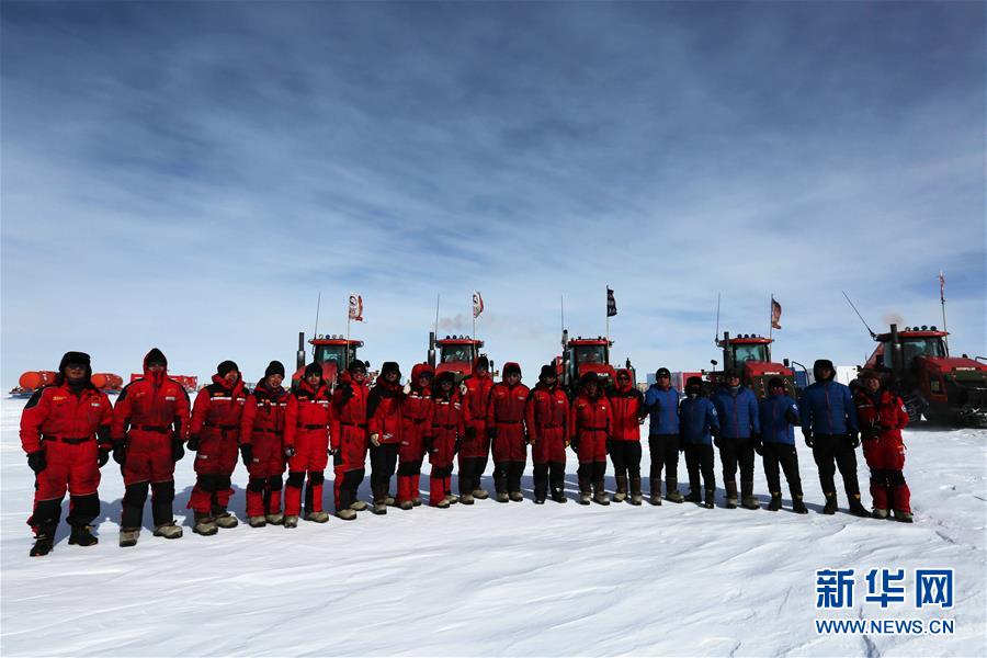 2月4日農(nóng)歷大年三十,部分內(nèi)陸隊員在南極冰蓋上合影。2月5日大年初一,中國第35次南極科學考察隊兩支內(nèi)陸隊——昆侖隊和泰山隊的37名隊員,繼續(xù)以中國南極中山站為目標,奔馳在茫茫的南極內(nèi)陸冰蓋上,在冰天雪地中度過了農(nóng)歷豬年第一天。新華社記者 劉詩平 攝