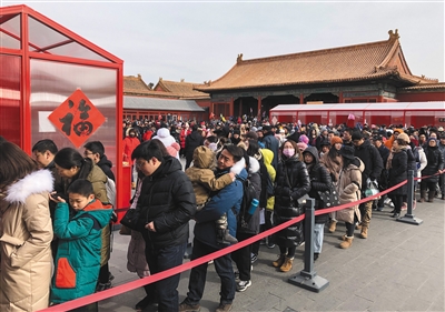 昨日,故宮,游客排隊(duì)參觀“中華老字號故宮過大年展”。新京報記者 浦峰 攝