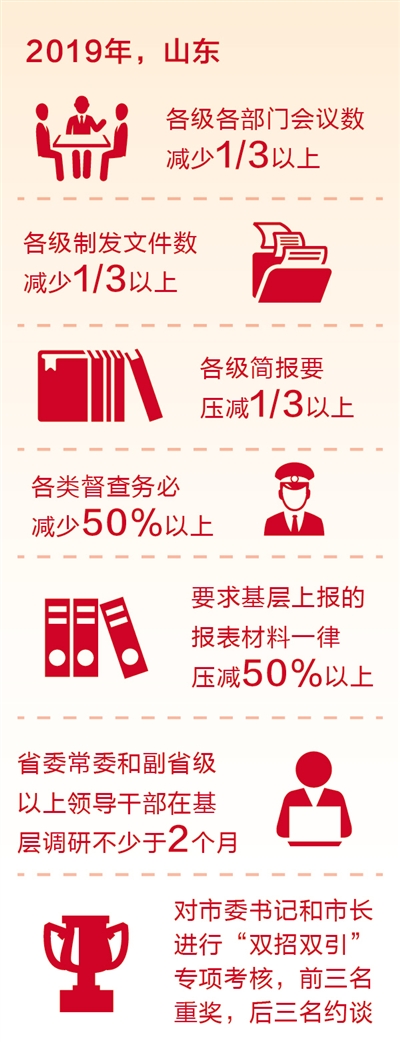 山東下決心砍掉不必要的會(huì)議,精簡(jiǎn)文件,讓干部從“文山會(huì)?!敝薪饷摮鰜?lái)。今年,山東各級(jí)各部門會(huì)議數(shù)量將減少1/3以上,各級(jí)制發(fā)文件數(shù)量將減少1/3以上,各級(jí)簡(jiǎn)報(bào)將壓減1/3以上,基層上報(bào)的報(bào)表材料一律壓減一半以上。