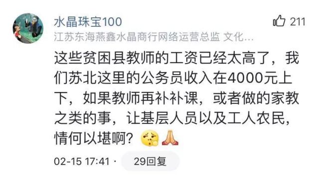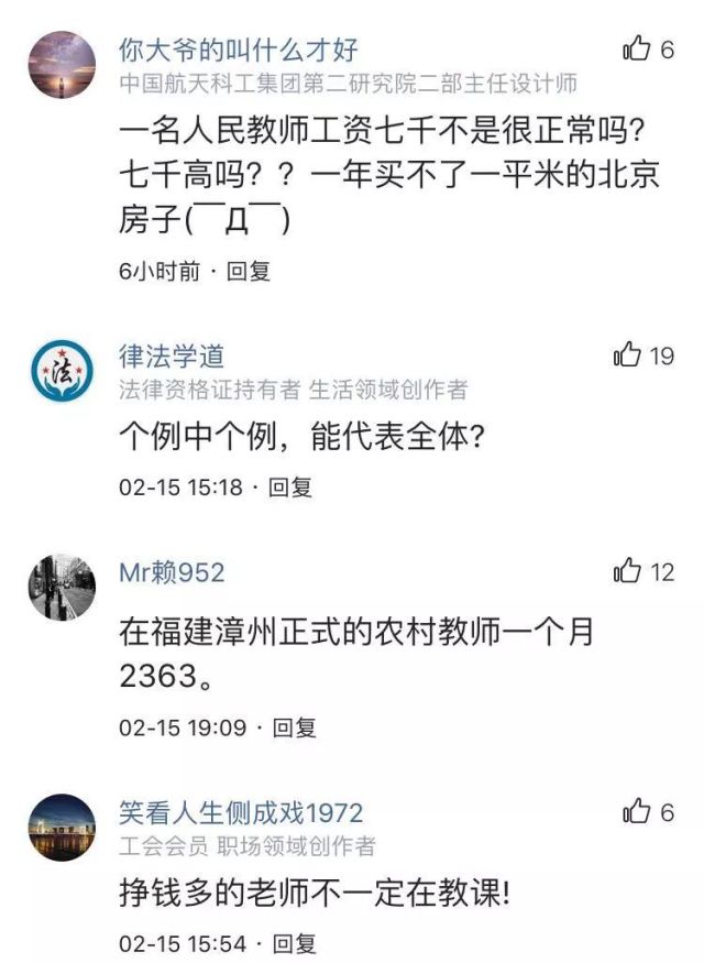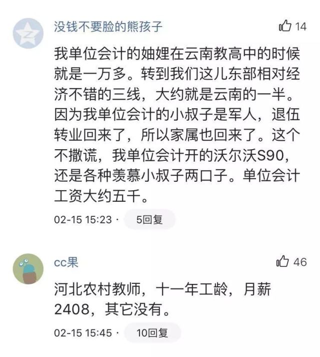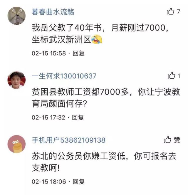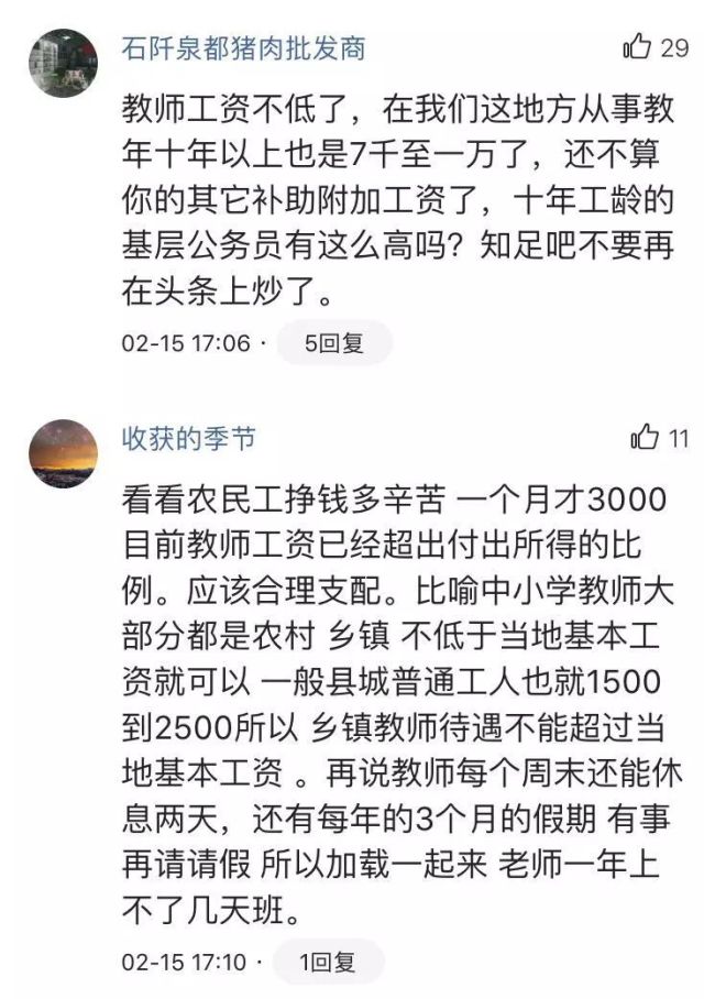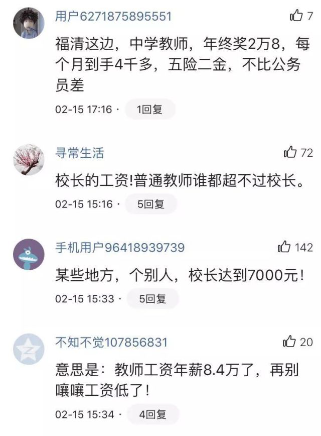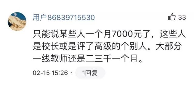 2月15日,經(jīng)濟日報新聞客戶端推送消息《教育部:某些國家級少數(shù)民族貧困縣教師月薪已達7000元》,引起大家的強烈反響。對于目前大多數(shù)教師的薪資水平、怎么看待教師待遇、怎么評價待遇的高低才客觀等問題,眾多網(wǎng)友進行了熱烈的討論,有教師還曬出了自己工資單……