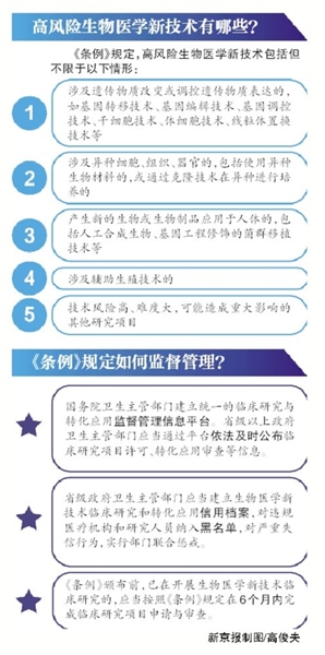 更重要的是,《條例》提出兩級風(fēng)險管理,省級、國務(wù)院衛(wèi)生主管部門按新技術(shù)風(fēng)險高低,分級審核。“審核權(quán)限在衛(wèi)生主管部門,而不是區(qū)域倫理審查委員會,這也意味著更加嚴(yán)格的監(jiān)管。”張新慶提醒說。