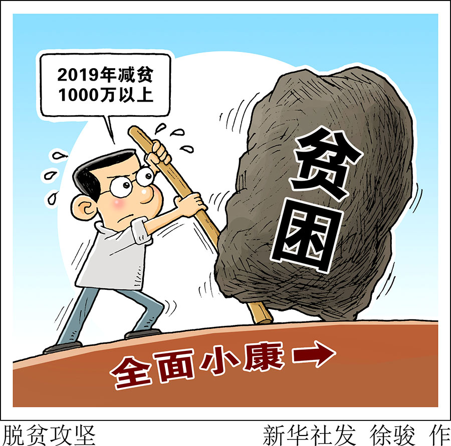 新華社北京3月5日電(記者侯雪靜、張紫赟)5日提交十三屆全國人大二次會(huì)議審議的政府工作報(bào)告提出,2019年農(nóng)村貧困人口減少1000萬以上。