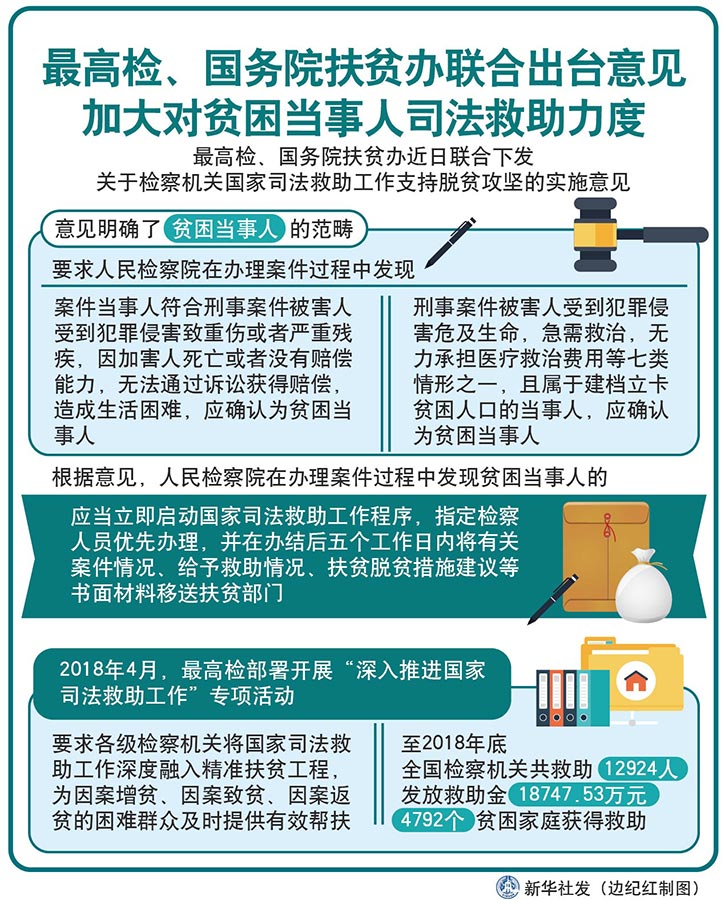 圖表:最高檢、國務院扶貧辦聯(lián)合出臺意見 加大對貧困當事人司法救助力度 新華社發(fā) 邊紀紅 制圖