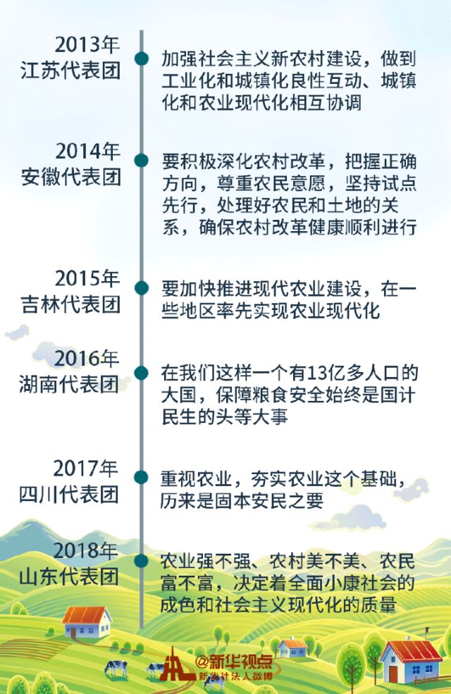 黨的十八大以來(lái),每年全國(guó)兩會(huì)期間下團(tuán)參加審議,習(xí)近平總書(shū)記都會(huì)談到“三農(nóng)”問(wèn)題。語(yǔ)重心長(zhǎng),充滿深情。