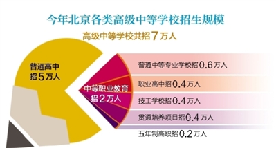 昨天,北京市教委發(fā)布《北京市教育委員會關(guān)于做好2019年高級中等學??荚囌猩ぷ鞯囊庖姟罚ㄒ韵潞喎Q“意見”)。北京青年報記者注意到,根據(jù)意見,今年本市各類高級中等學校招生規(guī)模為7萬人,其中普通高中招5萬人,中等職業(yè)教育招2萬人。同時,確定中考文化課考試時間為2019年6月24日至26日。
