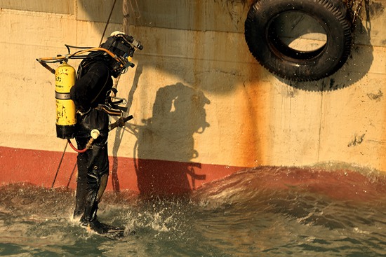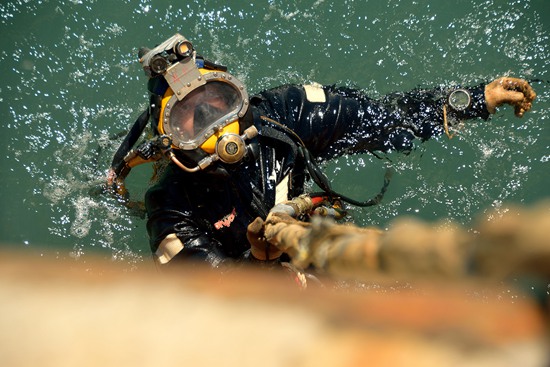 因?yàn)榻?jīng)常要在淤泥里探摸,潛水員在水底的移動(dòng)大多都是“爬”著完成。在韓國搜尋“世越號(hào)”沉船遇難者遺骨時(shí),潛水員就是爬著,把沉船方圓5海里的海底,每一寸都摸了一遍。