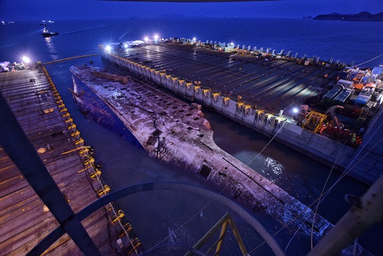 在打撈“世越號(hào)”的兩年間,潛水隊(duì)的隊(duì)員們每天都能看到,正對(duì)著失事海域的一處山頂上,遇難者家屬在那里支起一頂帳篷。直到沉船出水那天,帳篷才收起,結(jié)束漫長的守望。