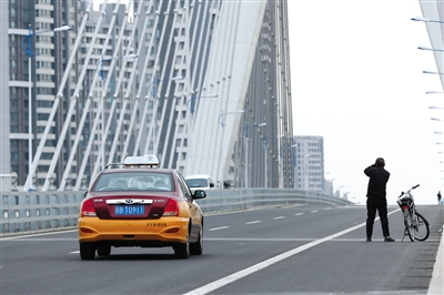昨日,燕潮大橋上的車輛和行人。新京報(bào)記者 侯少卿 攝