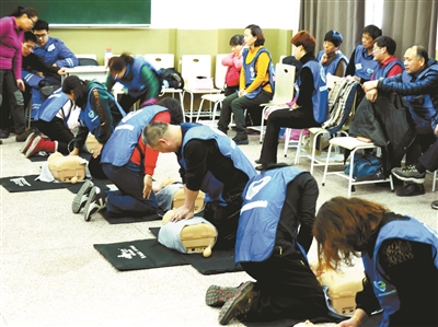 志愿者在老師指導(dǎo)下進(jìn)行實戰(zhàn)演練