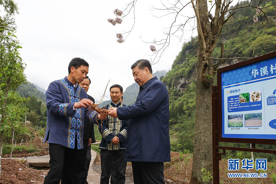 走訪一家脫貧戶,他沿著鄉(xiāng)間小路步行察看自然環(huán)境、村容村貌,了解該村通過種植中藥材黃精等特色經濟作物帶動村民脫貧的情況。