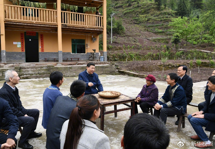 湖南湘西十八洞村困難群眾施成富家門(mén)前的空地,成了總書(shū)記召開(kāi)“現(xiàn)場(chǎng)座談會(huì)”的場(chǎng)地。他同村民圍坐在一起商量脫貧致富奔小康之策。