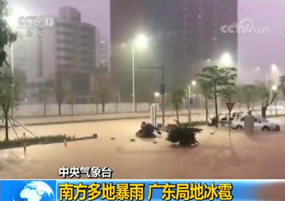 中央氣象臺監(jiān)測顯示,昨天廣東、廣西、福建、江西、湖南等地部分地區(qū)出現暴雨或大暴雨;廣東中部和珠江口附近還伴有8~10級雷暴大風,局地出現冰雹。