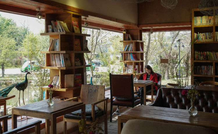 4月12日,一位女士在金嶺村小張灣古建筑群的茶室里休息。湖北省大悟縣金嶺村,5年前還是一個(gè)貧窮落后的偏僻山村,通過(guò)整合當(dāng)?shù)毓琶窬淤Y源,發(fā)展鄉(xiāng)村游,如今已經(jīng)成為一個(gè)生態(tài)宜居的美麗鄉(xiāng)村,2018年接待游客超過(guò)20萬(wàn)人次。新華社記者程敏攝