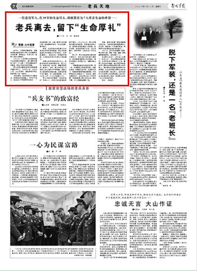 老兵季必林走了,卻為他人點燃了“生命之火”,在生命得到延續(xù)的同時,也將無私的大愛留在了人間,贏得了全社會的敬意。地方領導和縣退役軍人事務局專程前來慰問季必林的家人,提出要針對其家庭困難給予扶持幫助。社會各界群眾和季必林的戰(zhàn)友也紛紛捐款,獻出愛心。他的老部隊不僅把季必林的事跡載入連史館,還決定通過愛心捐助,資助季必林的一對兒女直至其成年。